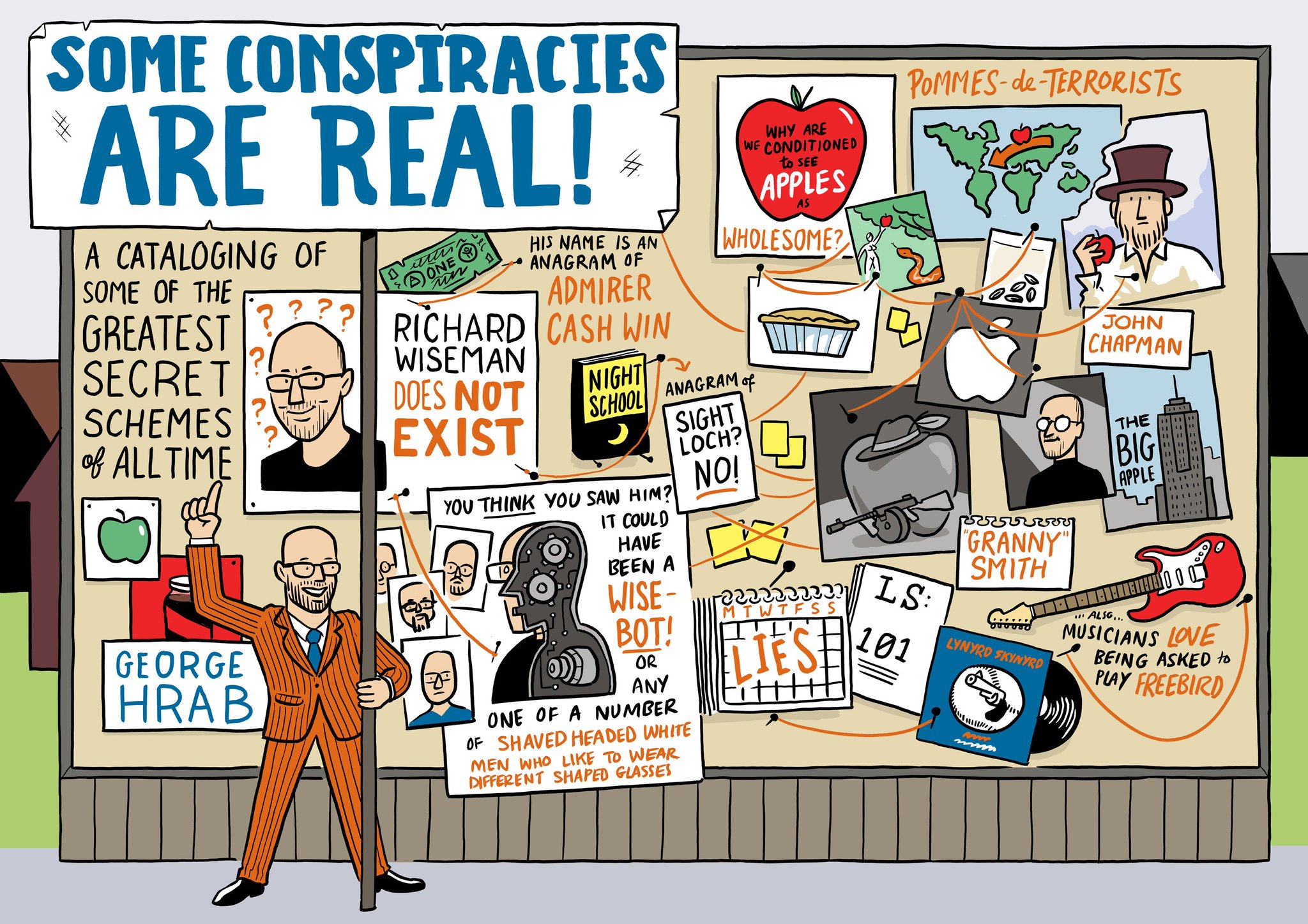 George zvolil netradiční pojetí své přednášky "Některé konspirace jsou pravdivé: Katalogování některých z největších tajných spiknutích všech dob." V abstraktu stálo: "Ač většina konspirací, od předstíraných přistání na Měsíci, přes mezinárodní bankovní kabaly, po prezidentské atentáty, jsou nesmyslem, historicky byla a jsou opatrně vytvořená spiknutí, která si kladou za cíl zmást, odvést pozornost a oklamat veřejnost. V této prezentaci bude George Hrab mluvit o řadě historických a současných konspirací a o tom, jak byly a jsou efektivní v matení veřejnosti." Ovšem, o příklady skutečných spiknutí se nejednalo. Naopak, George si vytvořil řadu svých, aby na nich demonstroval konspirativní myšlení, usuzování kauzalit z korelací a náhodné propojování asociací, které je tak časté u nadšenců do konspirací.