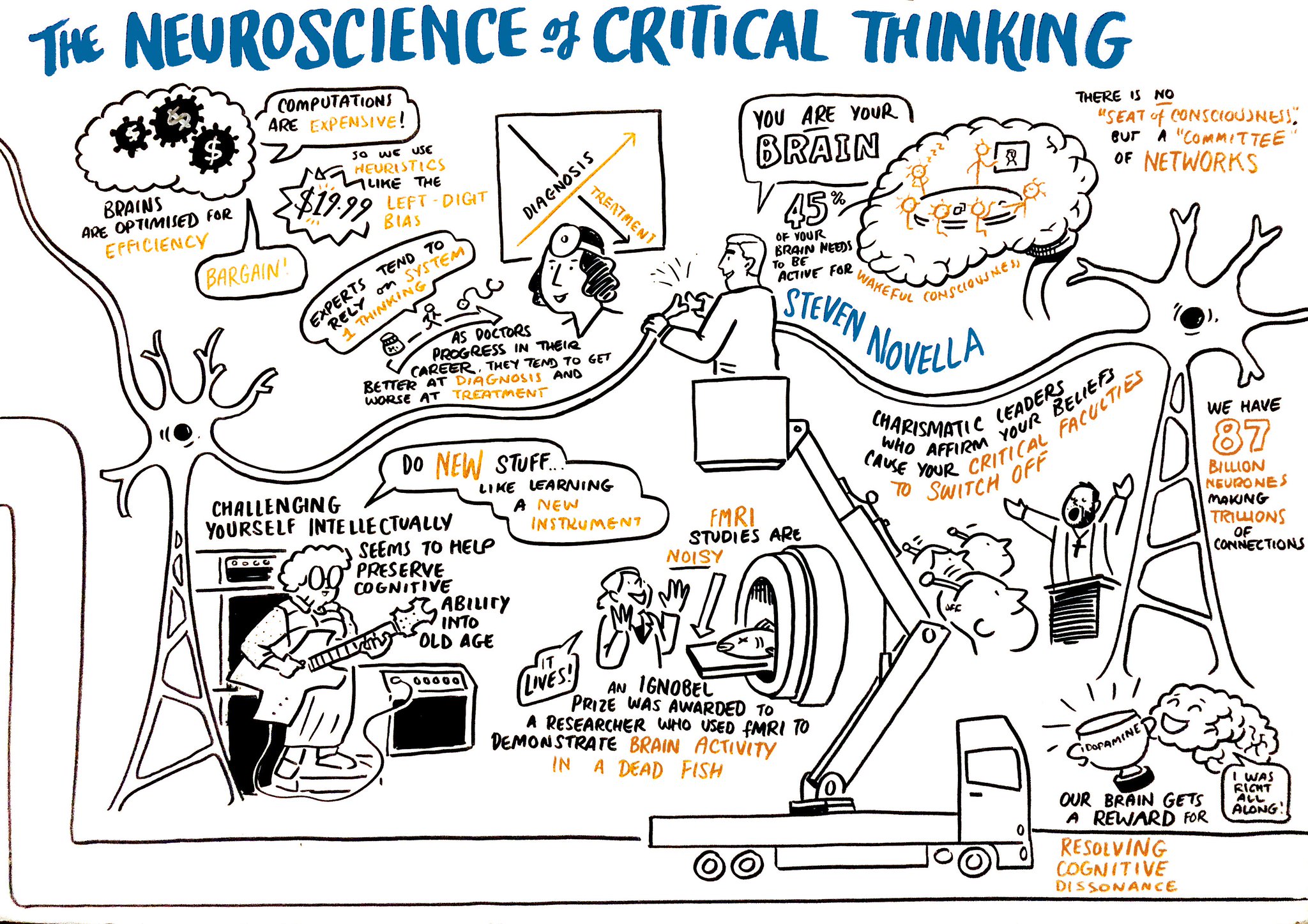 Díky svým mnohaletým zkušenostem neurovědce nám může Steven Novella předat znalosti o tom, jak funguje kritická mysl. Proč je v našem mozku tolik padacích dveří a slepých uliček? Jakto, že nad nějakou myšlenkou hloubavě přemýšlíme a nějakou zavrhneme ihned? Proč se některé věci nám zdají naprosto jasné a jiným naprosto nesmyslné? V této přednášce nám Steve ukáže, že čím lépe poznáme svůj mozek, tím můžeme být lépe skeptičtí. Steve je klinický neurolog a profesor na lékařské fakultě Yaleově univerzitě. Je producent a moderátor populárního skeptického podcastu The Skeptics Guide to the Universe."