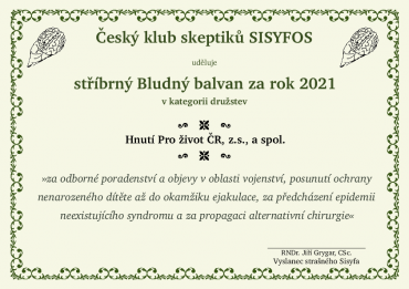 Komitét pro udělování Bludných balvanů při Českém klubu skeptiků SISYFOS oznamuje, že v kategorii družstev za rok 2021 získává stříbrný Bludný balvan Hnutí pro život ČR za odborné poradenství a objevy v oblasti vojenství, posunutí ochrany nenarozeného dítěte až do okamžiku ejakulace, za předcházení epidemii neexistujícího syndromu a za propagaci alternativní chirurgie.