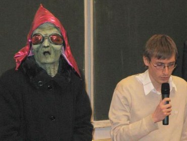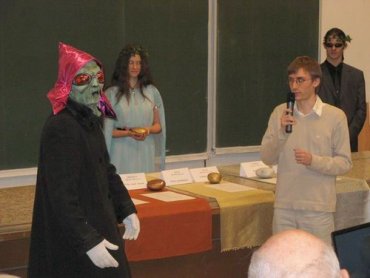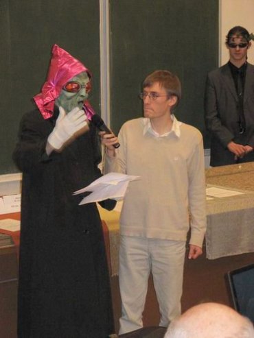 Autorizovaný záznam vystoupení Mimozemšťana a jeho tlumočníka po udělení zlatého Bludného balvanu Erichovi von Dänikenovi 12. 3. 2007 ve Strouhalově posluchárně MFF UK v Praze 2