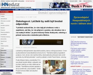 "Léčitelé neškodí tím, že vám dají pít zředěnou vodu s aspirinem, ani tím, že vás připraví o peníze, ale okradou vás o čas nutný k léčbě," je přesvědčený Oskar Andrysek, onkolog a primář nemocnice následné péče Měšice.