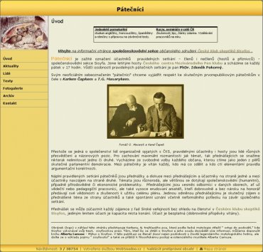 Od roku 2007 má společenskovědní sekce vlastní webovou stránku (www.patecnici.wbs.cz), na níž jsou zveřejňovány aktuality, seznam jádra členů sekce, názvy témat i příspěvky členů k zajímavé problematice. Autorem je Marek Matějka, který také zvýšil návštěvnost sekce tím, že mezi pátečníky zve své skeptické studenty. Jeho zásluhou se věkový průměr účastníků snížil z 50 - 60 roků na 30 - 40 let.