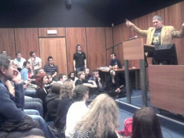 Poslední den v přestupném roce naplnil pan profesor RNDr. Petr Kulhánek, CSc. konferenční sál Moravské zemské knihovny v Brně více než třemi sty zájemci, přičemž řada mladých posluchačů musela přijmout místa na zemi. Oba protagonisté paní magistra Irena Vykoupilová i pan profesor měli berle, pomocí kterých se pohybovali. Pan profesor tuto situaci vtipně okomentoval hned na počátku přednášky v návaznosti na svoje příjmení a potom statečně vydržel stát celou přednášku bez opory. Nebylo divu, že po rozsáhlé hodinové diskusi, která navazovala na dvouhodinovou přednášku, si požádal o ukončení diskuze s tím, že eventuelní další dotazy zodpoví vsedě při autogramiádě. Přednáška byla velice zajímavá a je příjemné konstatování, že přednášky navštěvují v takovém počtu mladí lidé, kteří se zajímají o vědecké poznání.