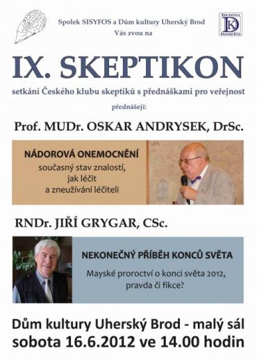 Český klub skeptiků Sisyfos zve všechny naše členy a příznivce na každoroční mimopražské setkání skeptiků - Skeptikon. IX. ročník se koná v Uherském Brodu ve dnech 15. – 17. června 2012.