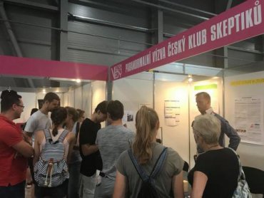 Kombinací názvu stánku „Paranormální výzva“ s předsedou klubu mávajícím virgulí a knihami s titulem Alternativní medicína a léčitelství, jsme doslova šokovali.