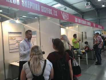 Claire Klingenberg: I klub skeptiků Sisyfos rozhodně patří na Veletrh vědy, který se odehrával na letňanském výstavišti PVA EXPO Praha 7.–9. června. Byl jedním z osmdesáti vystavovatelů, u kterého se návštěvníci veletrhu, kterých letos bylo 24 800 (o 7 tisíc více než vloni), mohli zastavit. Sisyfos a Paranormální výzvu jsme první dva dny reprezentovali s Jakubem Kroulíkem, se značnou pomocí Jeleny Příplatové, na kterou jsme, ač byla u stánku Přírodovědecké fakulty, bez skrupulí přehrávali zatvrzelé zastánce homeopatie (Ne, opravdu se neschovávají během testů jejich účinnosti, prostě účinnost nemají, nejsou jako myši ve Stopařově průvodci galaxií… Dobře, počkejte, zavolám Vám kolegyni...) a návštěvníky, kteří přišli Sisyfu vynadat za nějaká stanoviska (Je mi líto, o žívé-mrtvé vodě nic nevím… Jestli jste četl na webu stanovisko, tak klub se k tomu staví tak, jak je v jeho stanovisku… Dobře, počkejte, zavolám Vám kolegyni...)